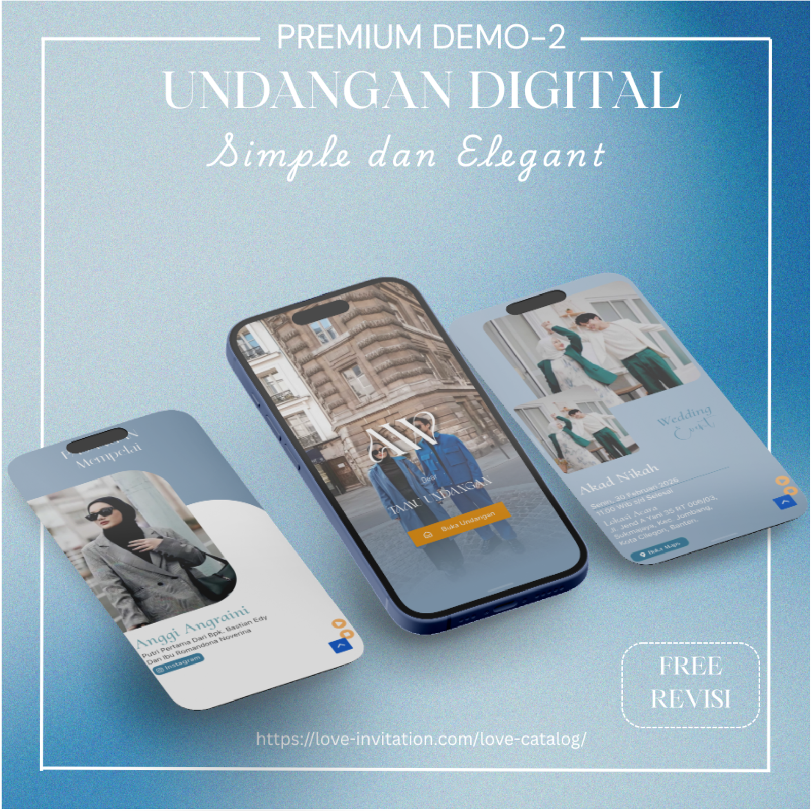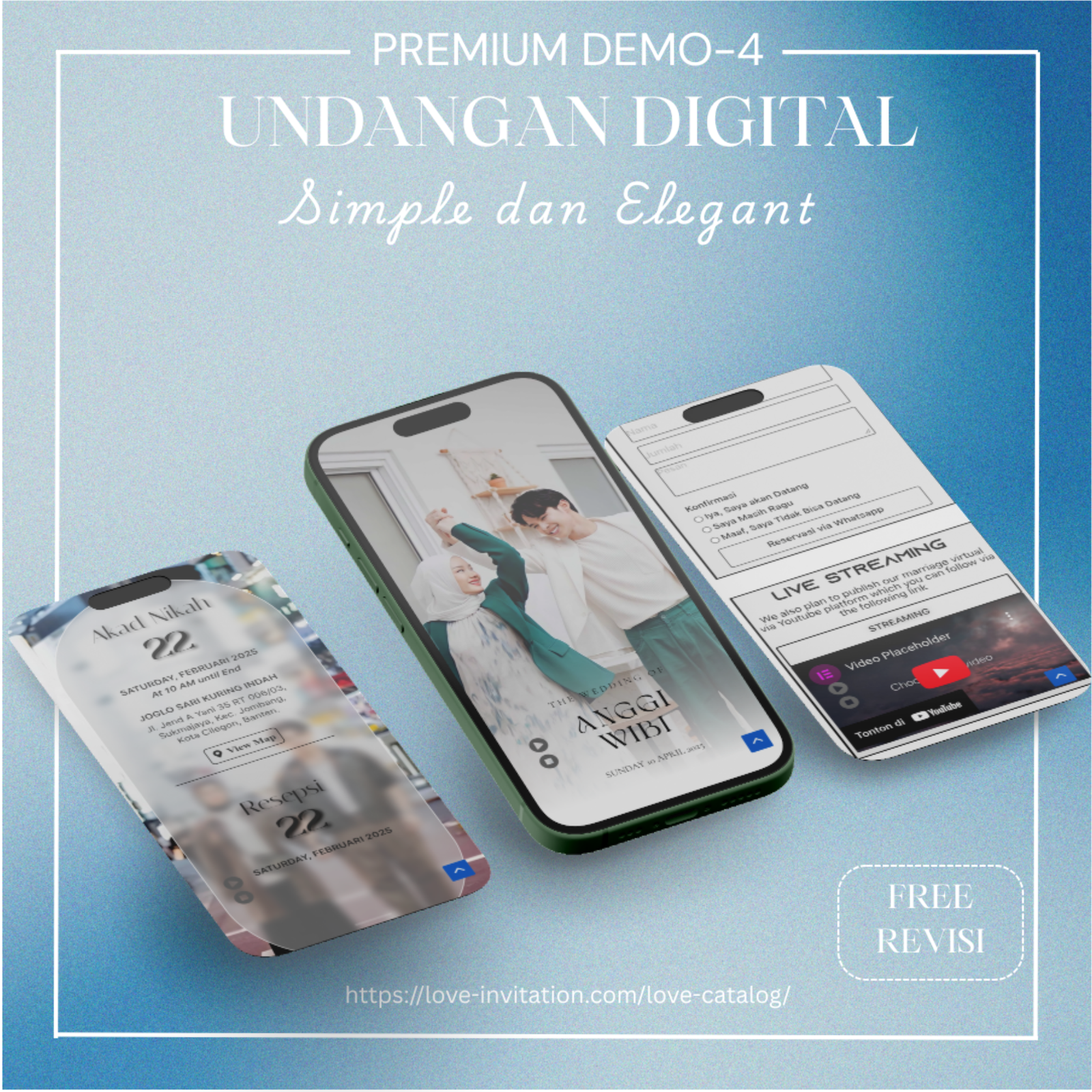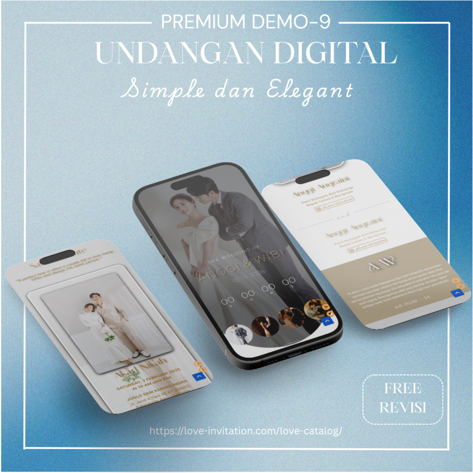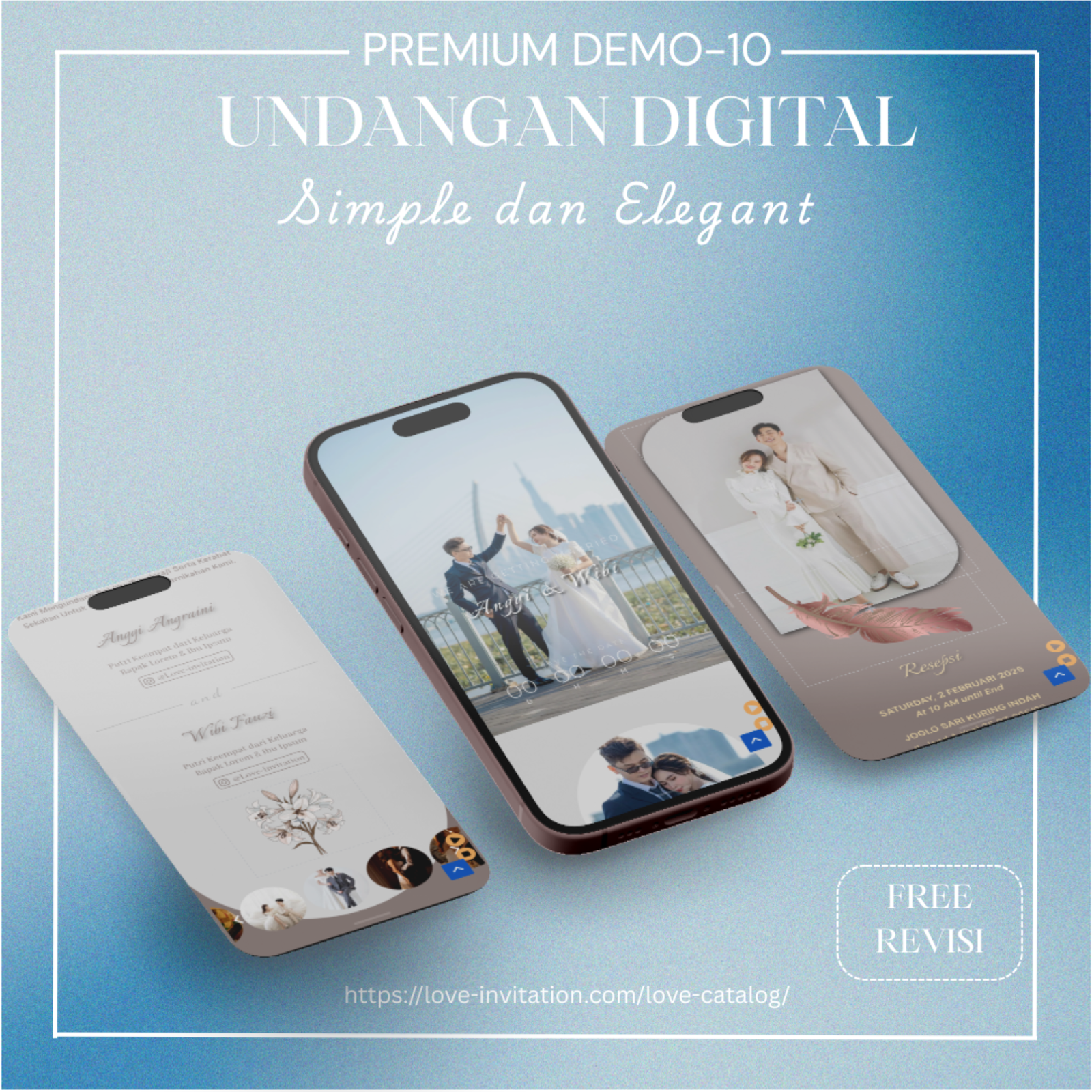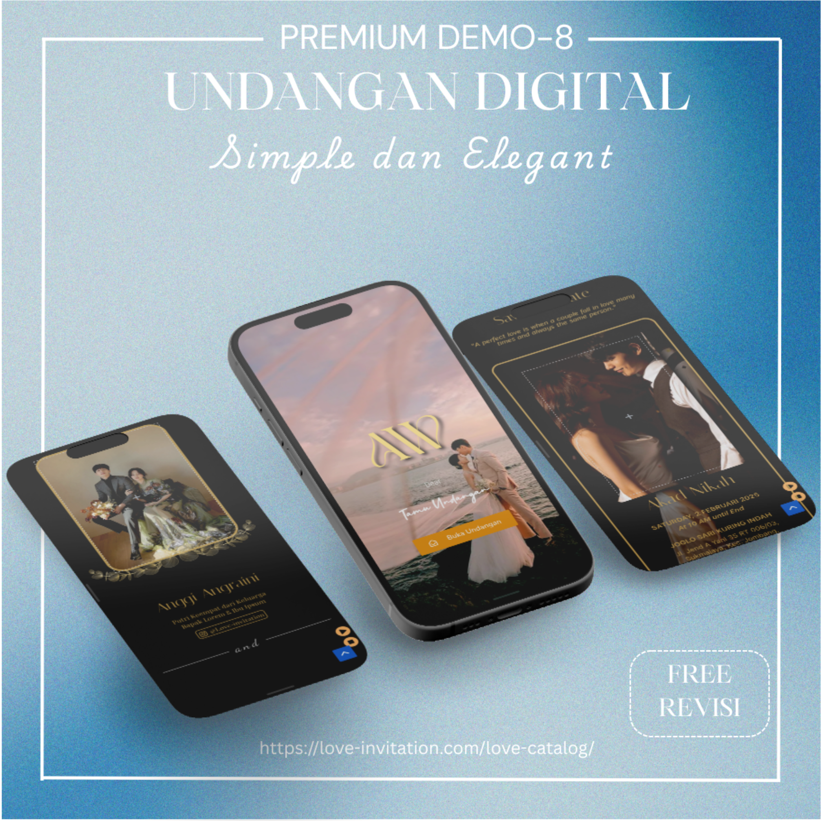 Saatnya beralih ke undangan digital, bagikan momen bahagia anda hanya dengan genggaman. Love-invitation.com hadir untuk membagikan momen bahagiamu tanpa terhalang jarak dan waktu dengan design yang elegan.