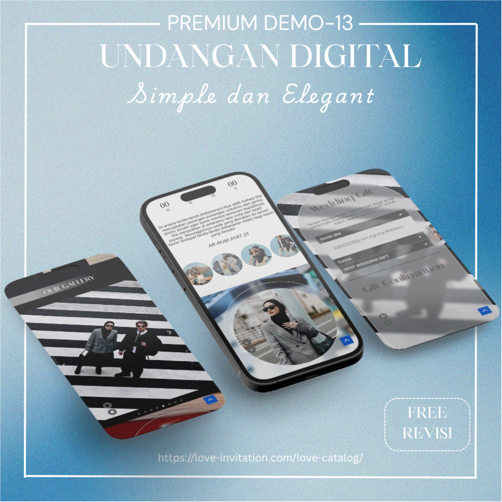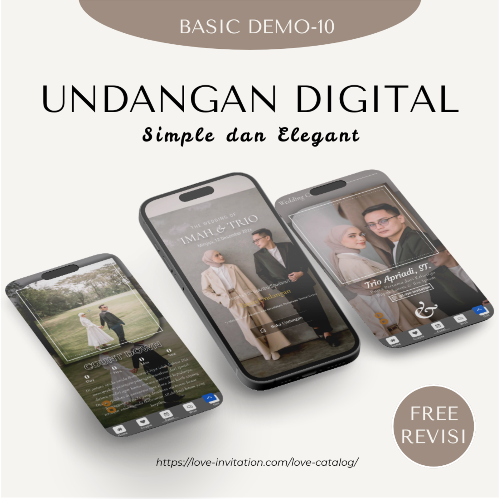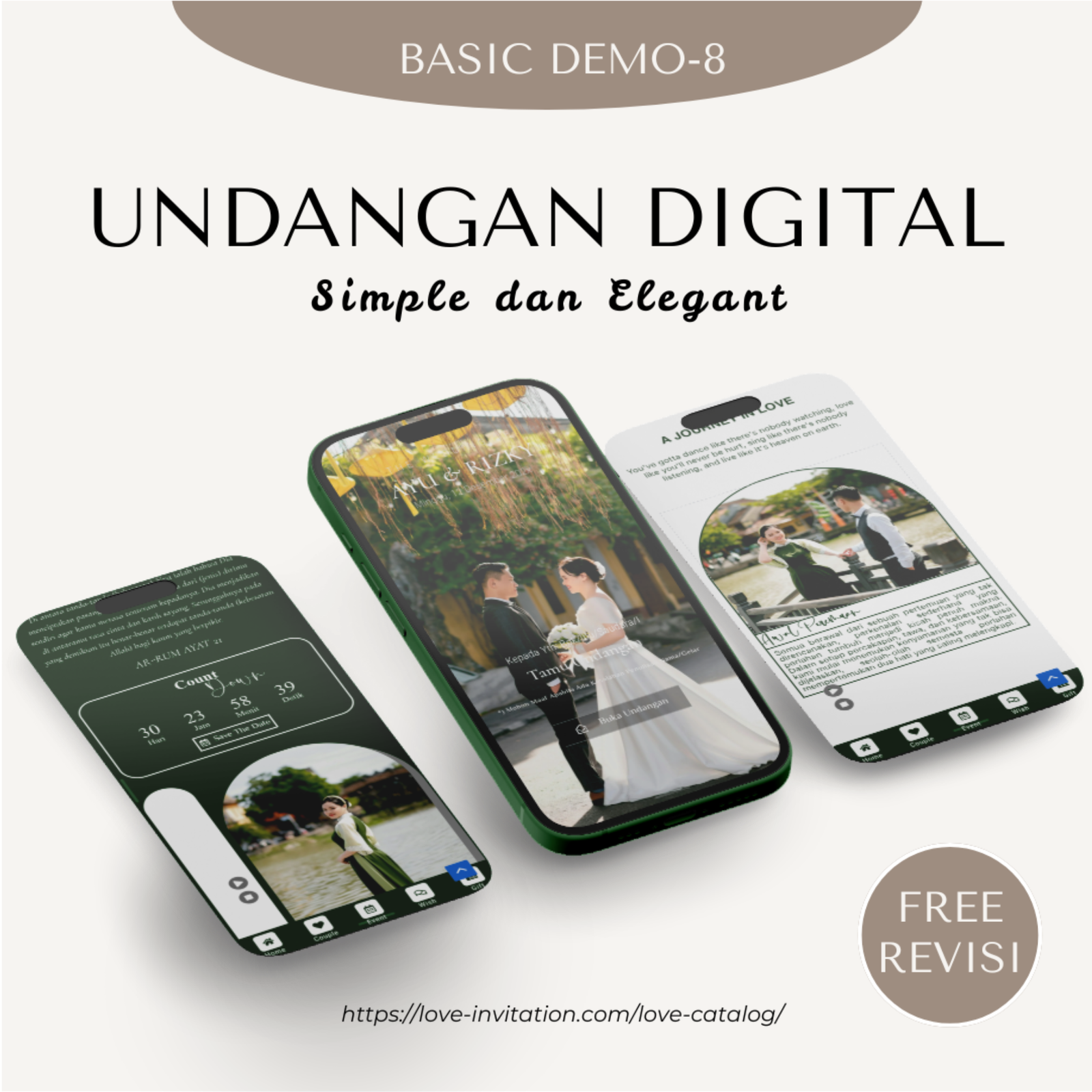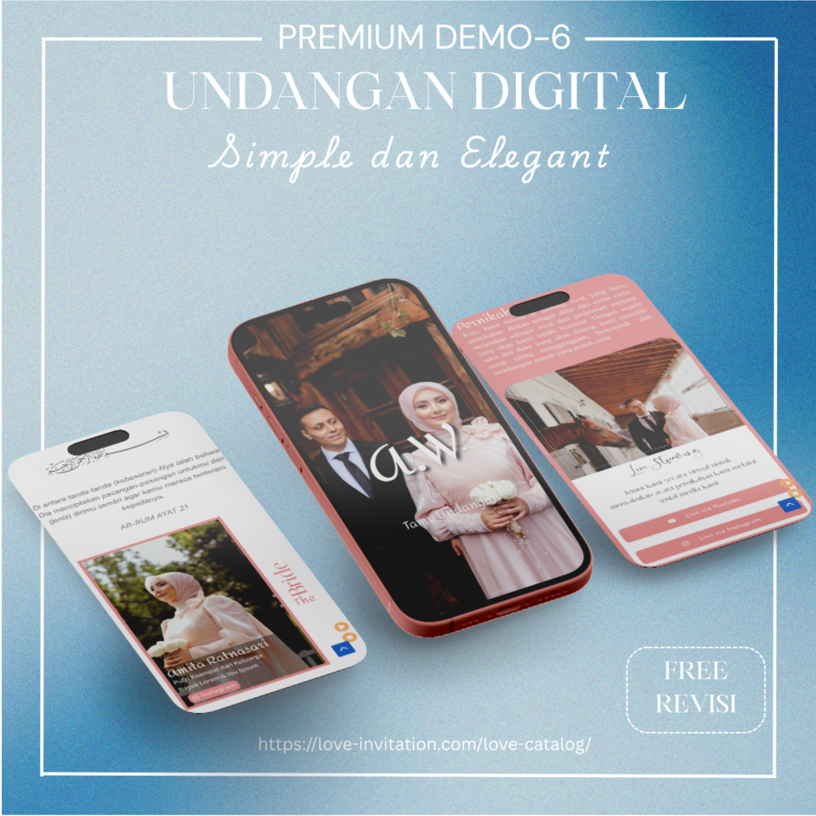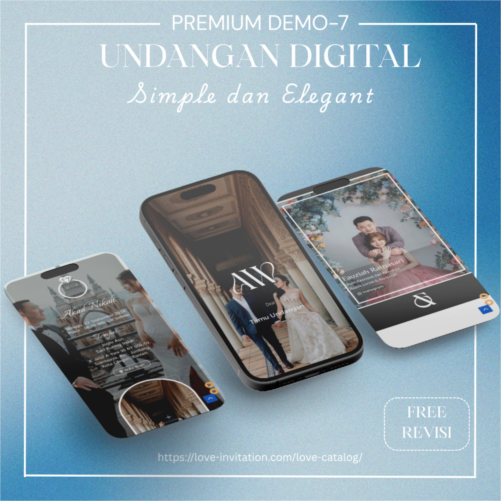 Saatnya beralih ke undangan digital, bagikan momen bahagia anda hanya dengan genggaman. Love-invitation.com hadir untuk membagikan momen bahagiamu tanpa terhalang jarak dan waktu dengan design yang elegan.